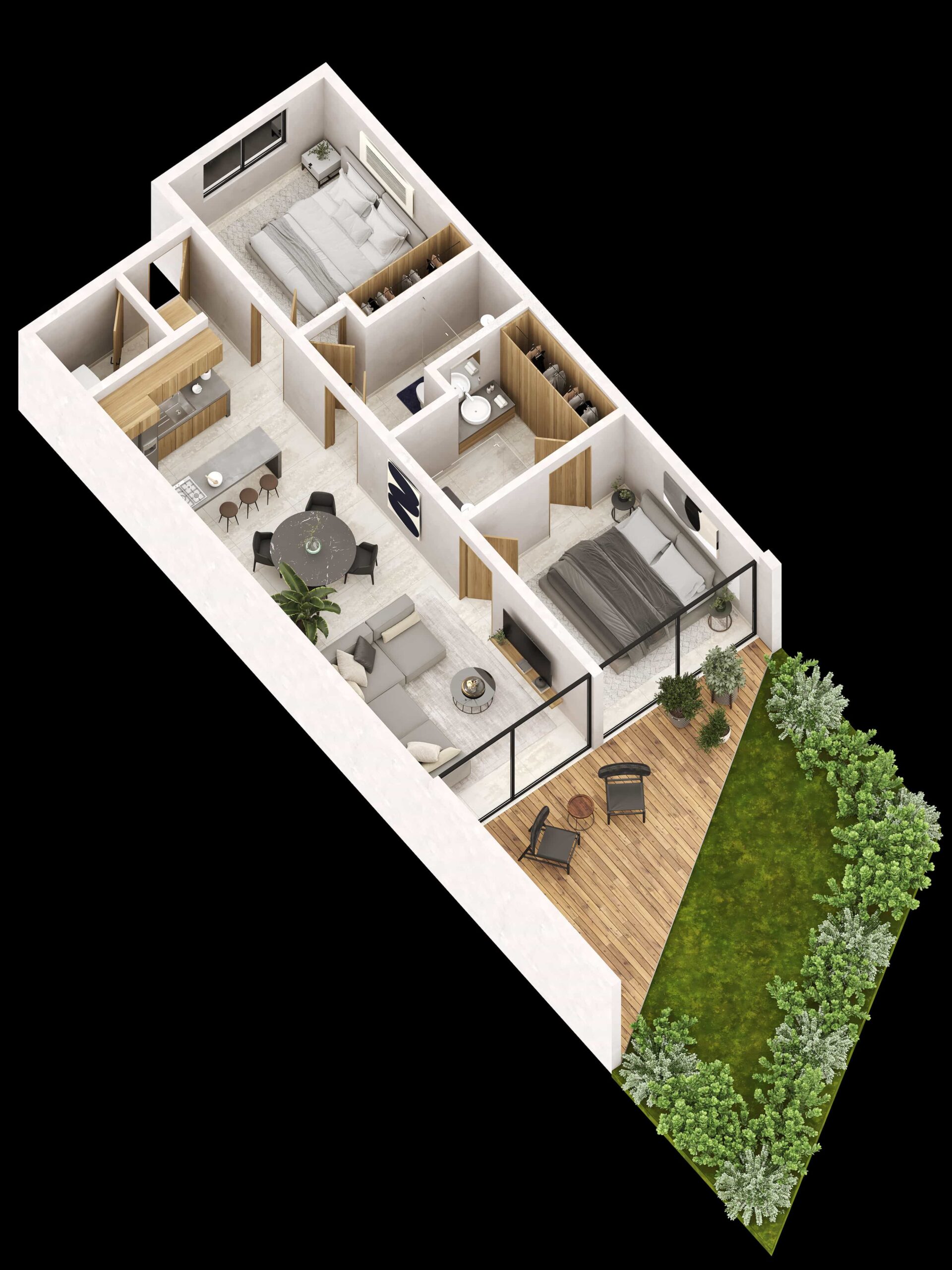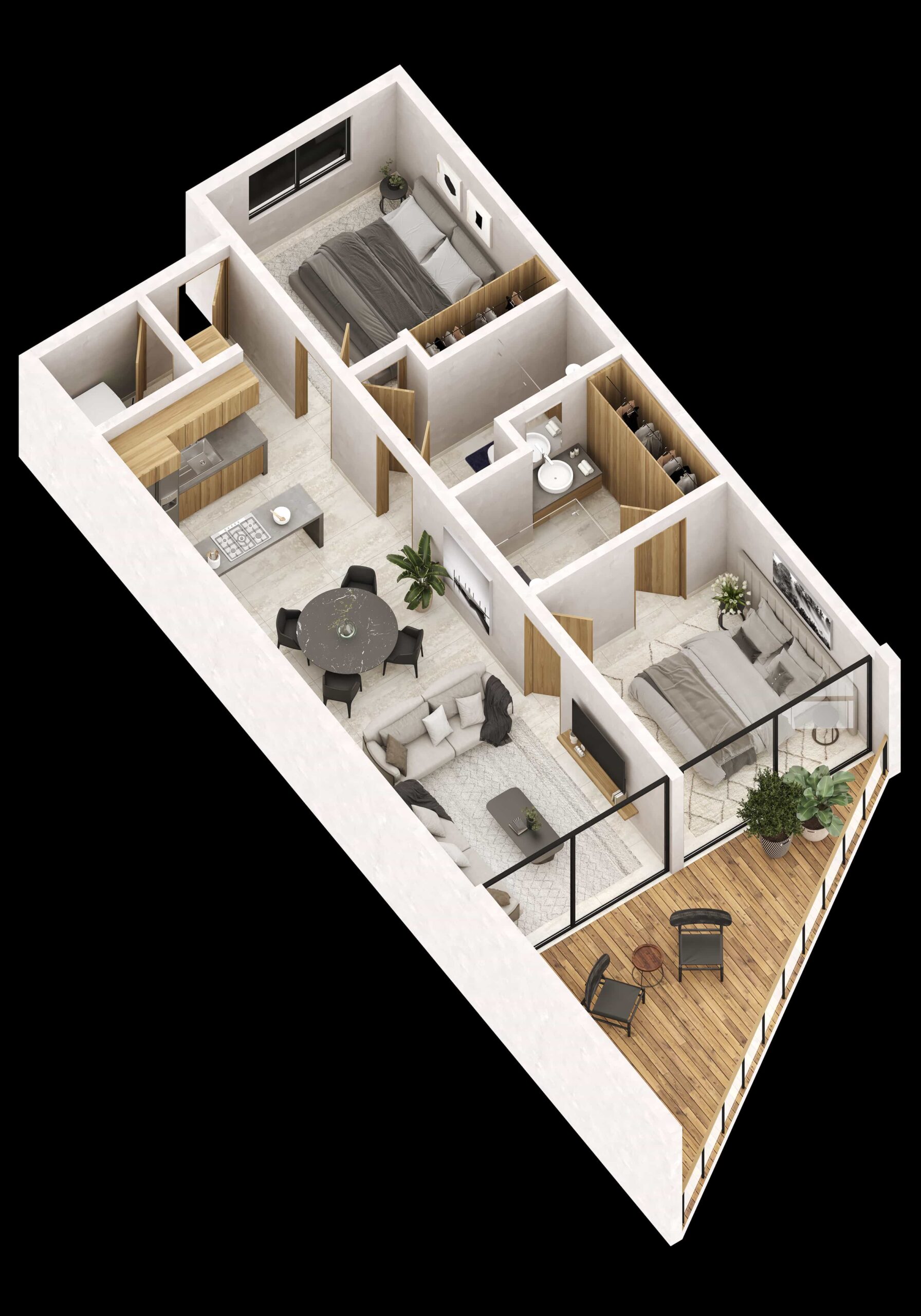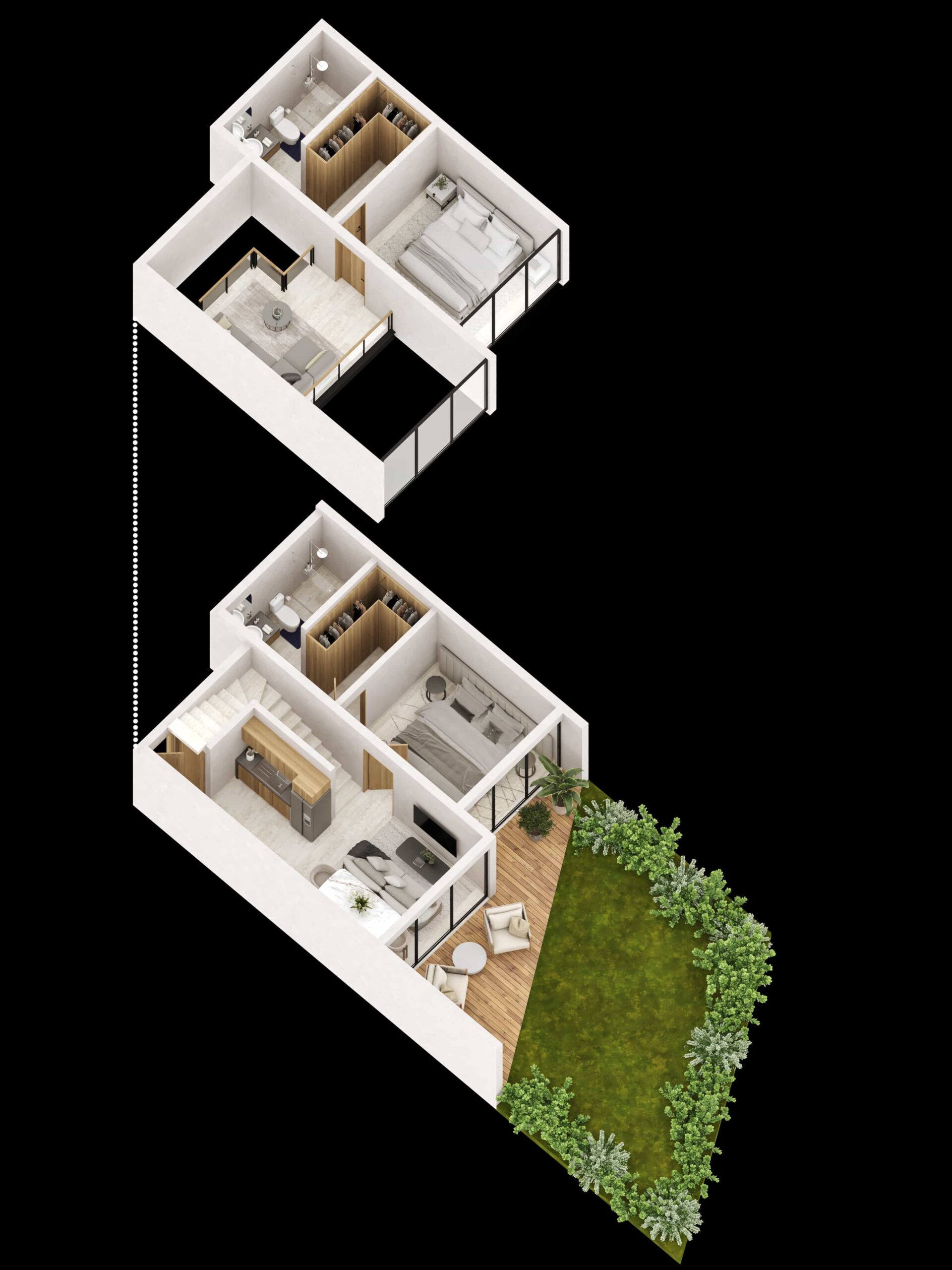 • Los departamentos de 1, 2, 3 y 4 recámaras, distribuidos en 2 torres de 24 niveles, ofrecen vistas panorámicas del paisaje natural y su entorno